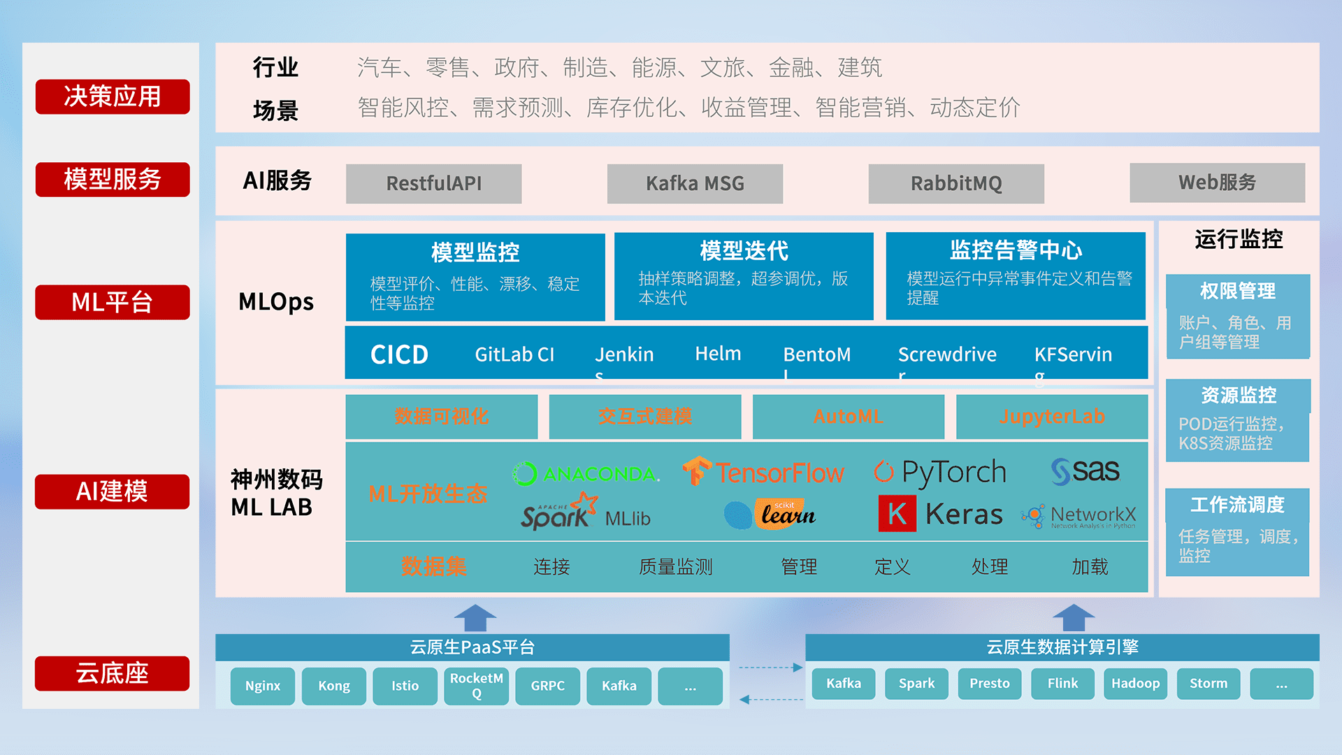 数据+模型双引擎驱动,,面向智能服务场景,,,,快速灵活利用AI技术,,支持业务决策,,,助力企业智能化转型破局。。。。